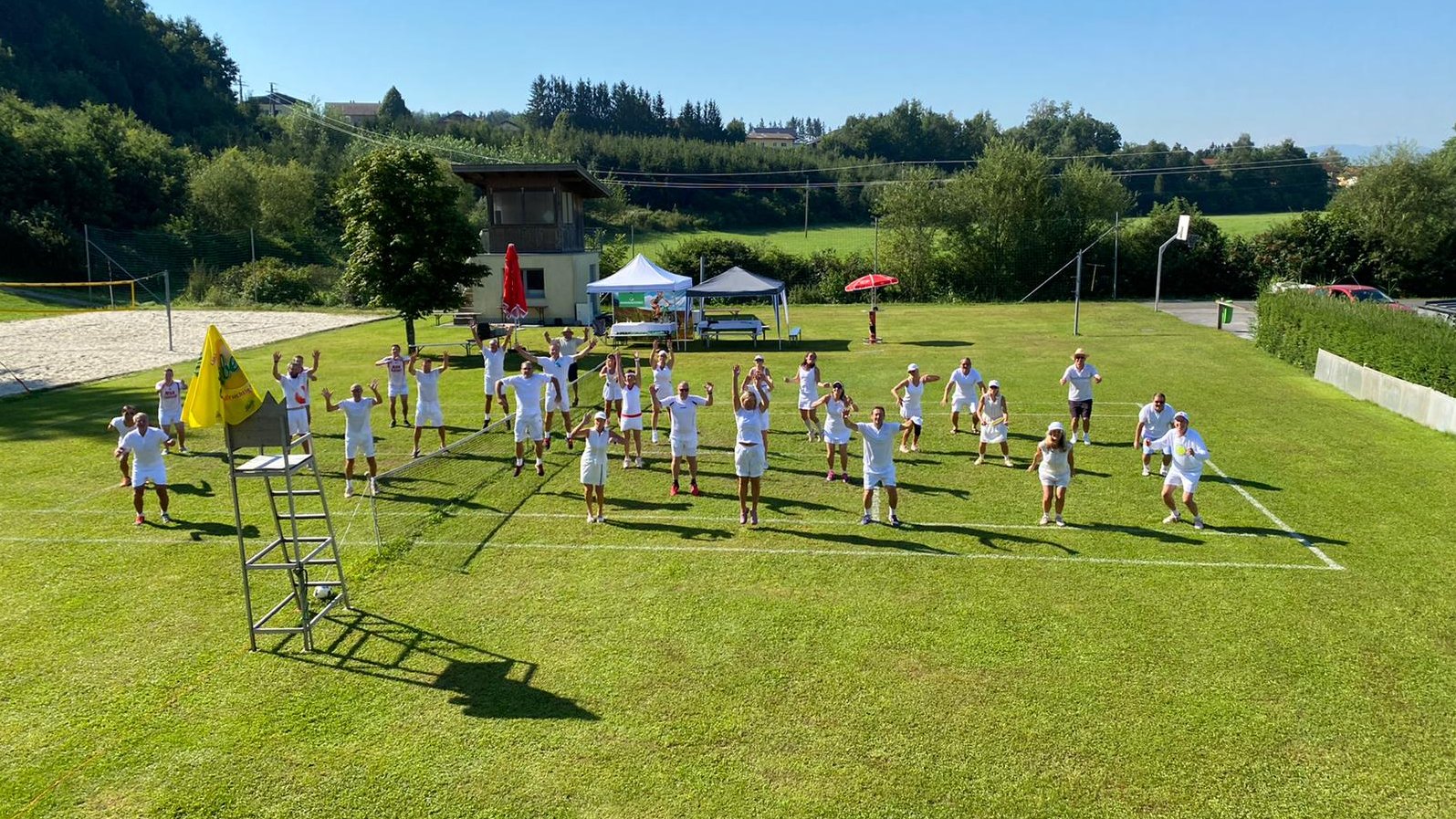 Am Samstag, 08.08.2020 fand das 2. Rasenturnier des USV St.Georgen statt. Waren letztes Jahr noch knappe 20 Teilnehmer am Start, waren es heuer bereits 28 begeisterte Tennisspielerinnen und -spieler. An einem herrlichen Tag, wurden die Teilnehmer von den Echinger Wirtsleuten ( Reini und Moni + Martin ) verköstigt, dazu gab es noch ein Fass Bier vom Verein gesponsert, und einen Sekt Empfang für die fleißigen Mädels. Es wurde natürlich alles mit den derzeitigen Corona Regeln abgewickelt (kein Bussaln, Abklatschen, Abstand, Holzschläger desinfizieren, etc.).