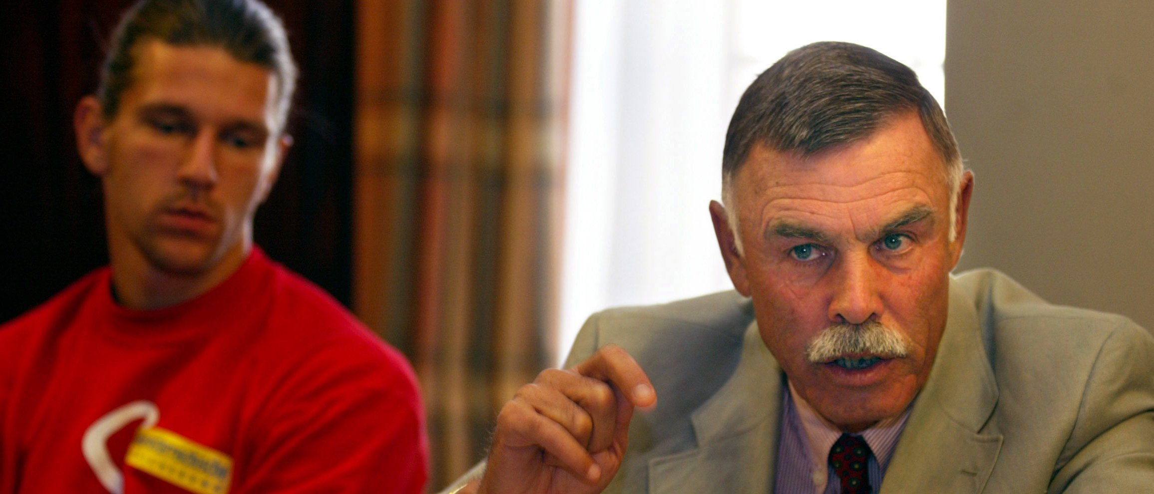 Der junge Jürgen Melzer, heute ÖTV-Sportdirektor und -Davis-Cup-Kapitän, bei einer Pressekonferenz im Jahre 2004 mit Leo-Günther Huemer.
