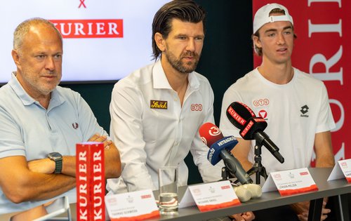 Zum allerersten Mal seit dem Jahr 2012 könnte Österreich im Davis Cup heuer unter die besten acht Nationen der Welt einziehen. Dazu muss, in der zweiten Qualifikationsrunde zum Davis Cup Final 8, am 12./13. September in Debrecen nur noch Ungarn überwunden wurden. Die Gastgeber sind mit dem Heimvorteil im Rücken und im Augenblick zwei ATP-Top-70-Spielern gewiss zu favorisieren. Doch das Ziel für das KURIER Austria Davis Cup Team ist und bleibt natürlich das Finalturnier in Bologna vom 18. bis 23. November. Das machte auch ÖTV-Sportdirektor und -Davis-Cup-Teamkapitän Jürgen Melzer am Freitag bei einer Pressekonferenz im KURIER-Medienhaus in Wien klar – und gab die Devise aus: „Hinfahren, Vollgas geben und irgendwie drei Punkte holen.“