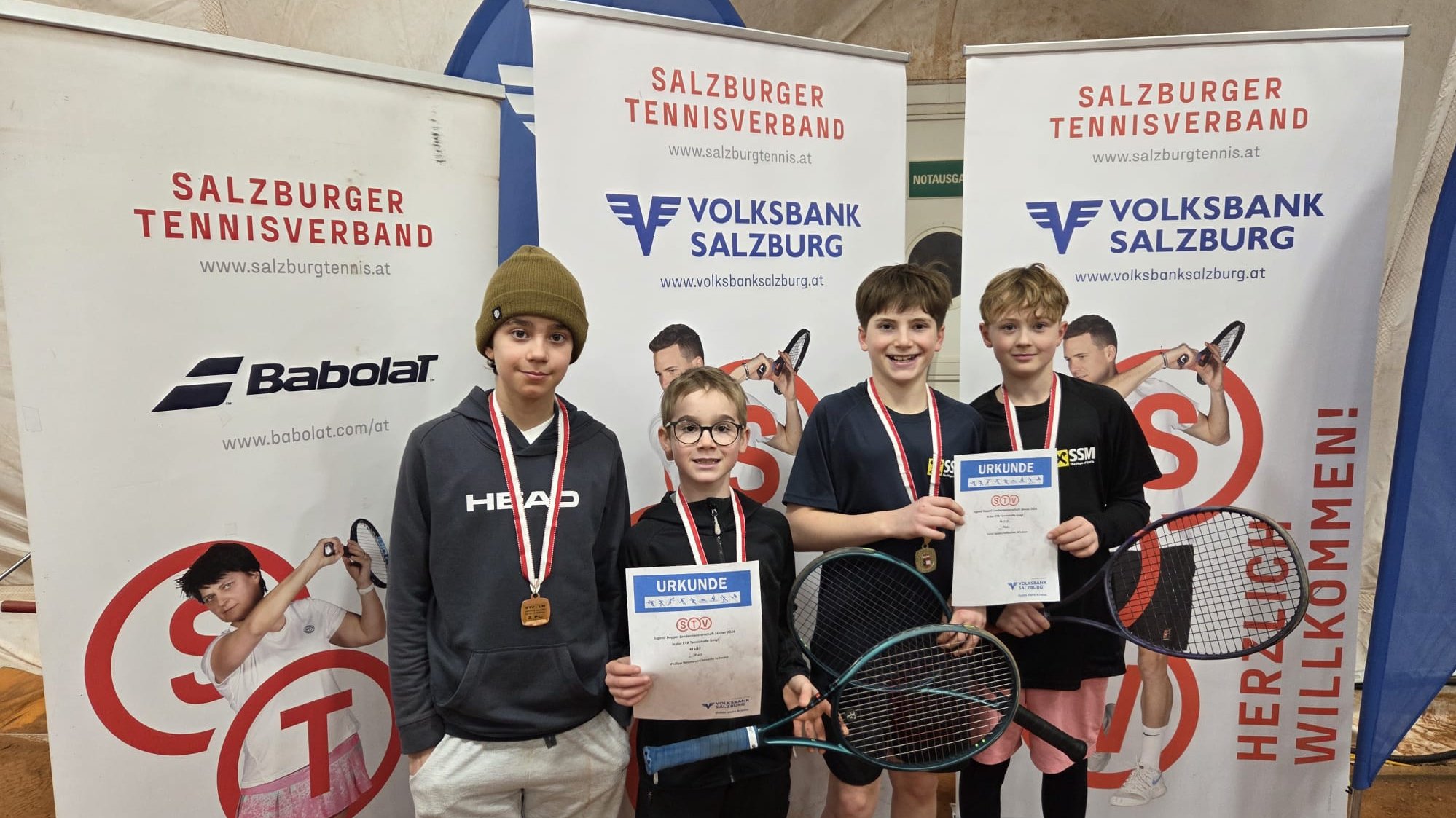 bei den Burschen U16 lautete das Endklassement, Gold: Simon Schwarz (TC St. Johann)/Yannik Glaser (UTC Michaelbeuern), Silber: Luca Krammer/Luca Auer (beide Rifer Tennisclub), Bronze: Arsenjie Petrovic/Linus Hausmanninger (beide TC ASKÖ Maxglan)